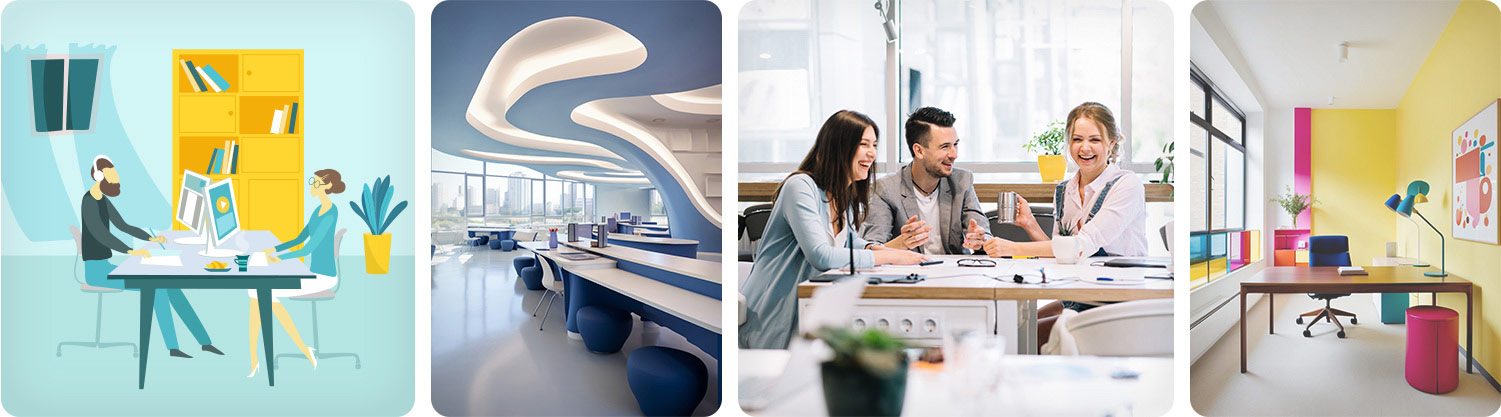 Ofis ortamında dikkat edilmesi gereken bir diğer nokta ise renk tercihleridir. Renklerin insan psikolojisi üzerinde oldukça büyük etkileri vardır. Hem görsel hem psikolojik olarak önemli bir yere sahip olan renk uyumu doğru kombinlendiğinde motive edici bir ofis ortamı yaratmanıza yardımcı olur. Mavi ve yeşil tonları sakinlik veren ve konsantrasyon için olumlu bir etkiye sahiptir. Sarı yaratıcılığı destekler, kırmızı ise dikkat çekici bir etkiye sahip olsa da uzun süreli kullanımlarda stres düzeyini artırabilir. Ofisinizi tasarlarken doğru renk paleti kullanmanız, ofis atmosferini daha dinamik ve üretken bir hale getirecektir. Ofis içerisinde bir renk paketi oluştururken aynı zamanda marka kimliğiyle de uyumlu bir tercihin yapılması gerekmektedir.